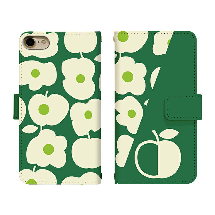 送料無料 手帳型 ケース Spray 402LG Y!mobile スプレイ ワイモバイルりんご 果物 細かい 柄 模様 デザイン 芸術 アート 派手 奇抜 個性的 斬新おしゃれ かわいい たくさん 深緑 白 黄緑 クロムグリーン