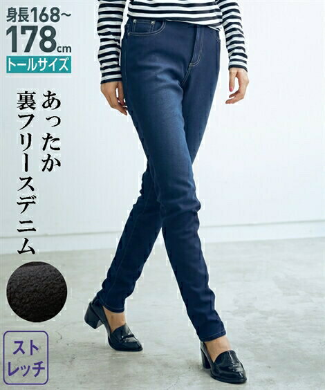 トール レディース ストレッチデニム裏フリーススキニーパンツ 冬 スキニー ジーンズ デニム パンツ スキニーパンツ スリムパンツ 4L/5L 股下84cm ニッセン