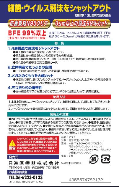 日進医療器Leaderリーダー カットマスクレギュラーサイズ3枚入×20個セット【中国大気汚染】【N95】【PM2.5】